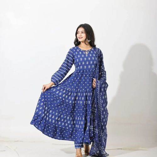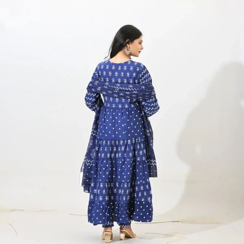 Indigo Bloom Tiered Anarkali Set