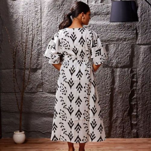 Noir Garden Cotton Midi Western Dress