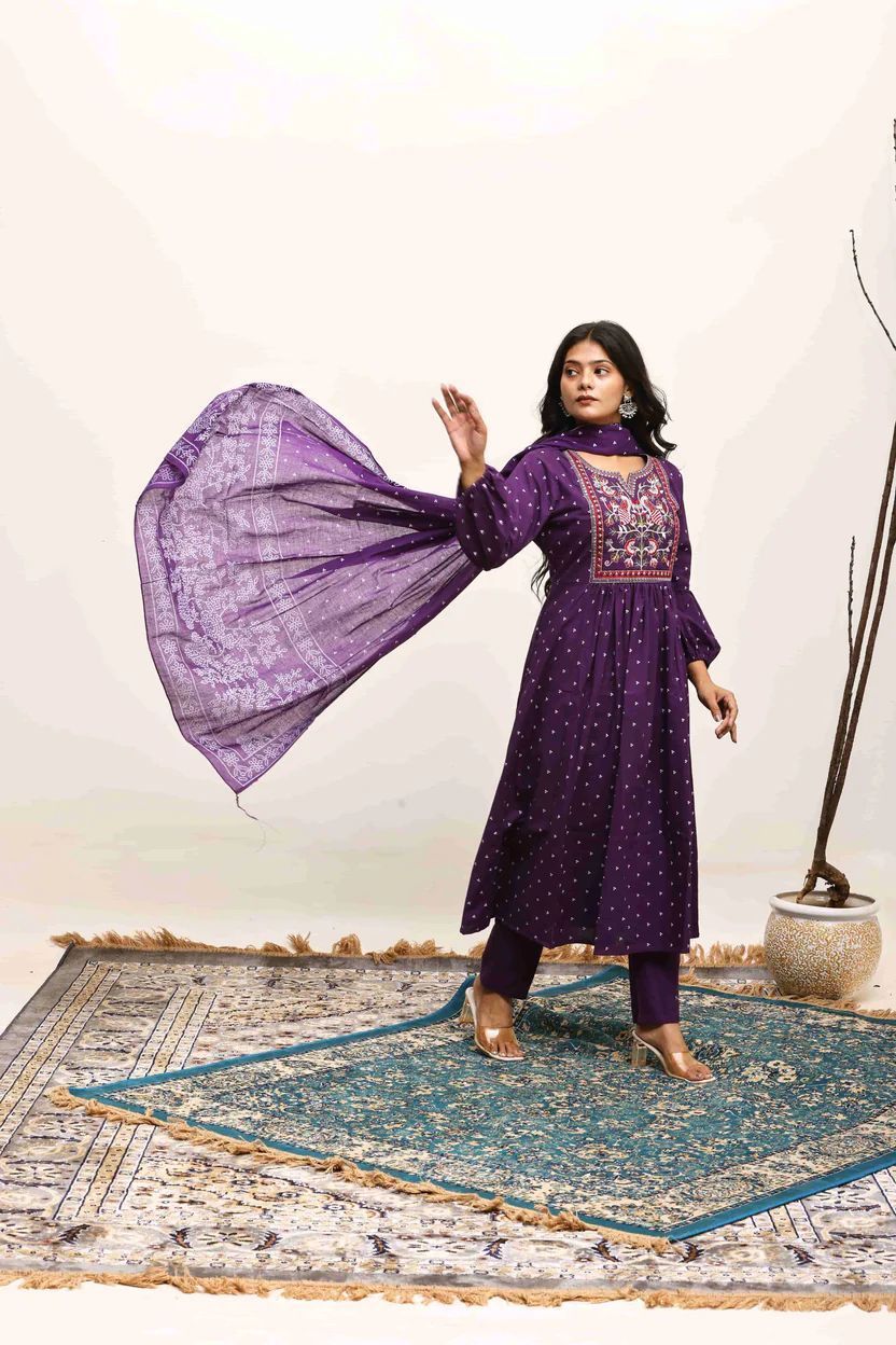 | Color | Plum With Multicolor Embroidery |