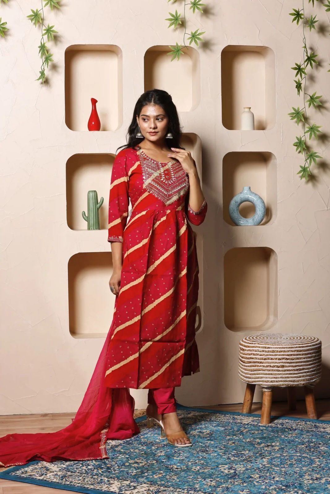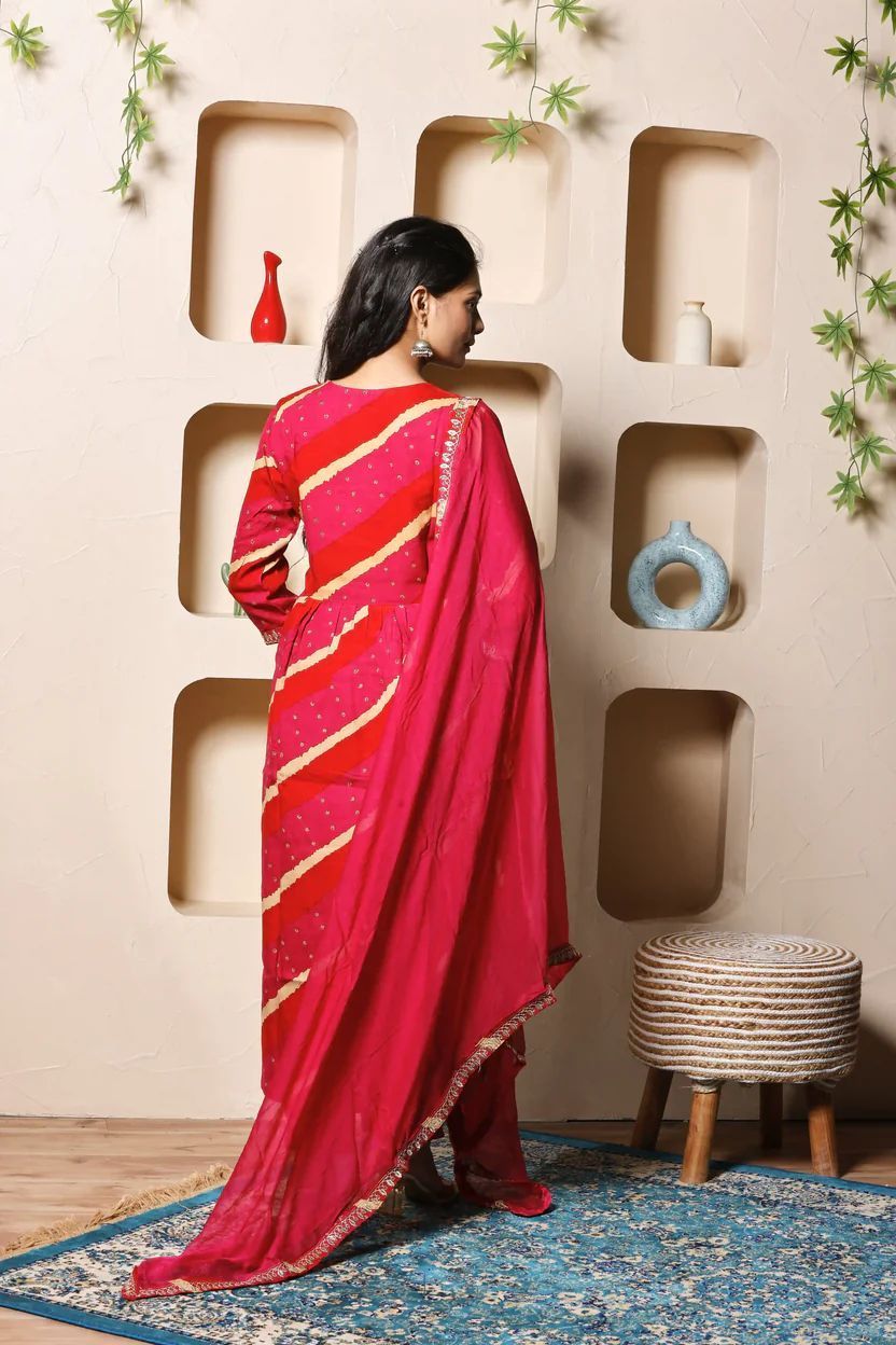 | Work | Bandhej Print, Gota-patti Embroidery, Mirror Work |