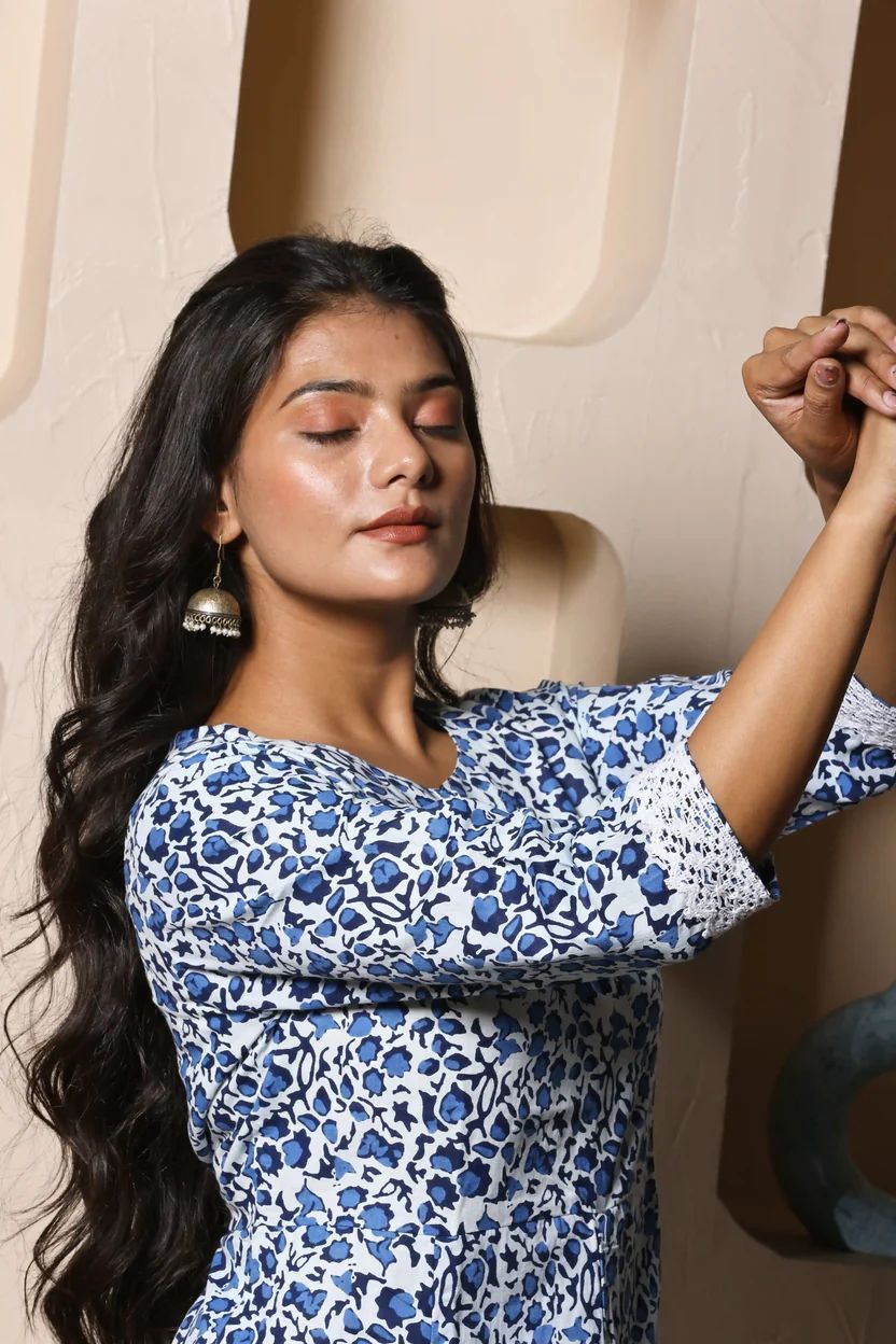 | Color | Ivory With Blue Floral Print |