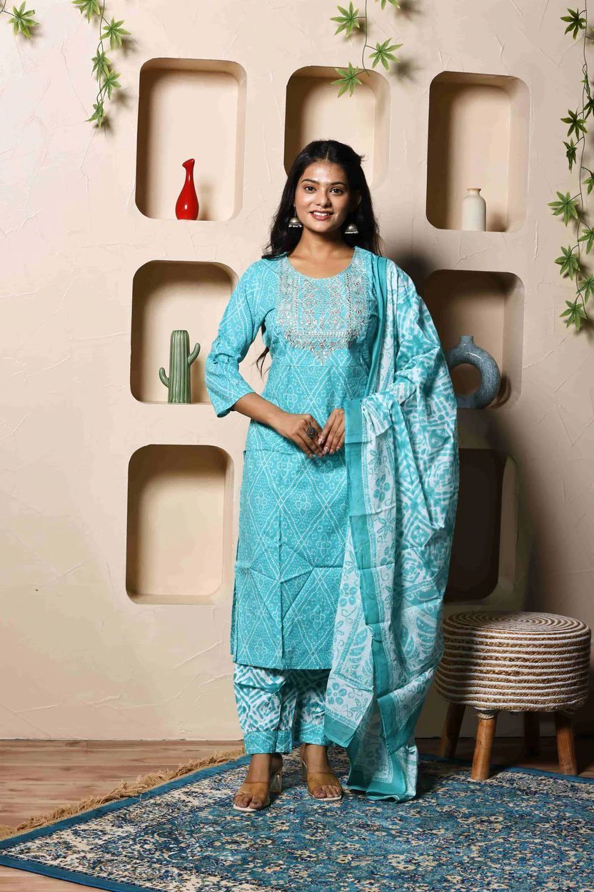 | Material | 100% Cotton (Kurta & Pant), Tissue Cotton Blend (Dupatta) |